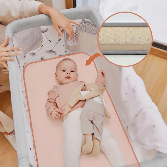 ✔️ Το λίκνο είναι εξοπλισμένο με άνετο, ημίσκληρο αφρώδες στρώμα με πυκνότητα T25, το οποίο προσφέρει σωστή και σταθερή στήριξη στο σώμα του μωρού. Επιπλέον, υπάρχει δυνατότητα εύκολης ρύθμισης της κλίσης του στρώματος, κάτι ιδιαίτερα χρήσιμο σε περιπτώσεις ήπιων λοιμώξεων του αναπνευστικού ή όταν το μωρό παρουσιάζει αναγωγές.