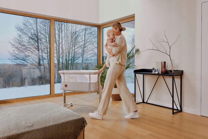 Η ομαλή ρύθμιση ύψους σε συνδυασμό με τη δυνατότητα ρύθμισης του μήκους των ποδιών επιτρέπει την εύκολη προσαρμογή του λίκνου στο ύψος του γονεϊκού κρεβατιού. Έτσι, το μωρό κοιμάται δίπλα σας με ασφάλεια, διευκολύνοντας τον νυχτερινό θηλασμό και την επαφή, χωρίς να περιορίζεται ο χώρος ύπνου των γονέων.